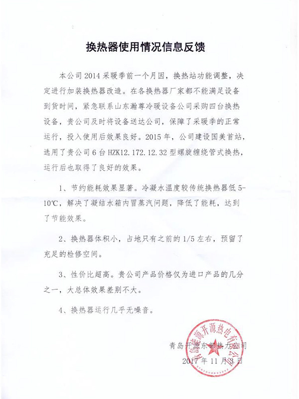 • 山東瀚尊冷暖設備有限公司坐落在美麗的齊國古都---淄博,是一家以換熱(冷凝)產(chǎn)品研發(fā)、生產(chǎn)、營銷為一體的企業(yè);自2008年以來,通過與中外知名熱力設備制造商合作以及自主探索和創(chuàng)新,于2010年成功研制生產(chǎn)出了公司第一臺螺旋纏繞管式換熱器;同時,公司依托自身強大的技術(shù)力量和研發(fā)能力,于2016年成功研制生產(chǎn)無死角無菌級雙管板式換熱器,近年來,公司努力走在中國換熱器行業(yè)的前列,致力于創(chuàng)造民族品牌,為用戶提供專業(yè)技術(shù)支持與服務......